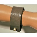 Nice Manchette unique, cuir chocolat et bouton de manchette ancien perle.